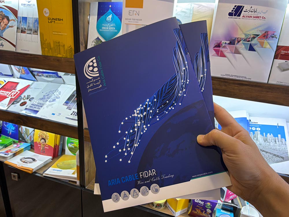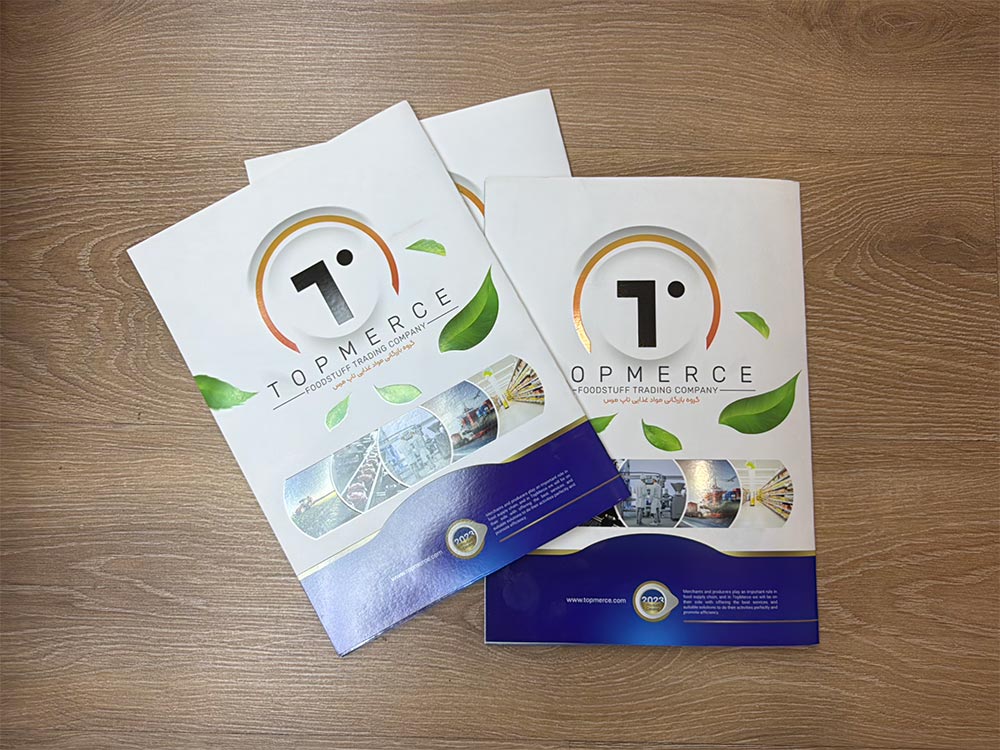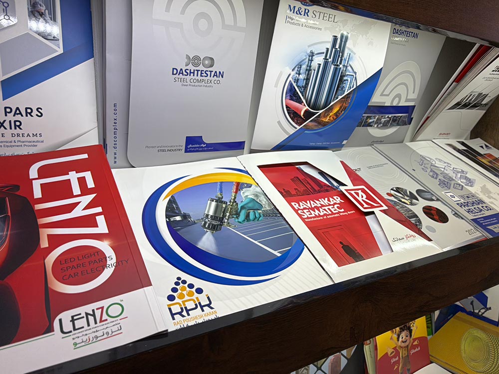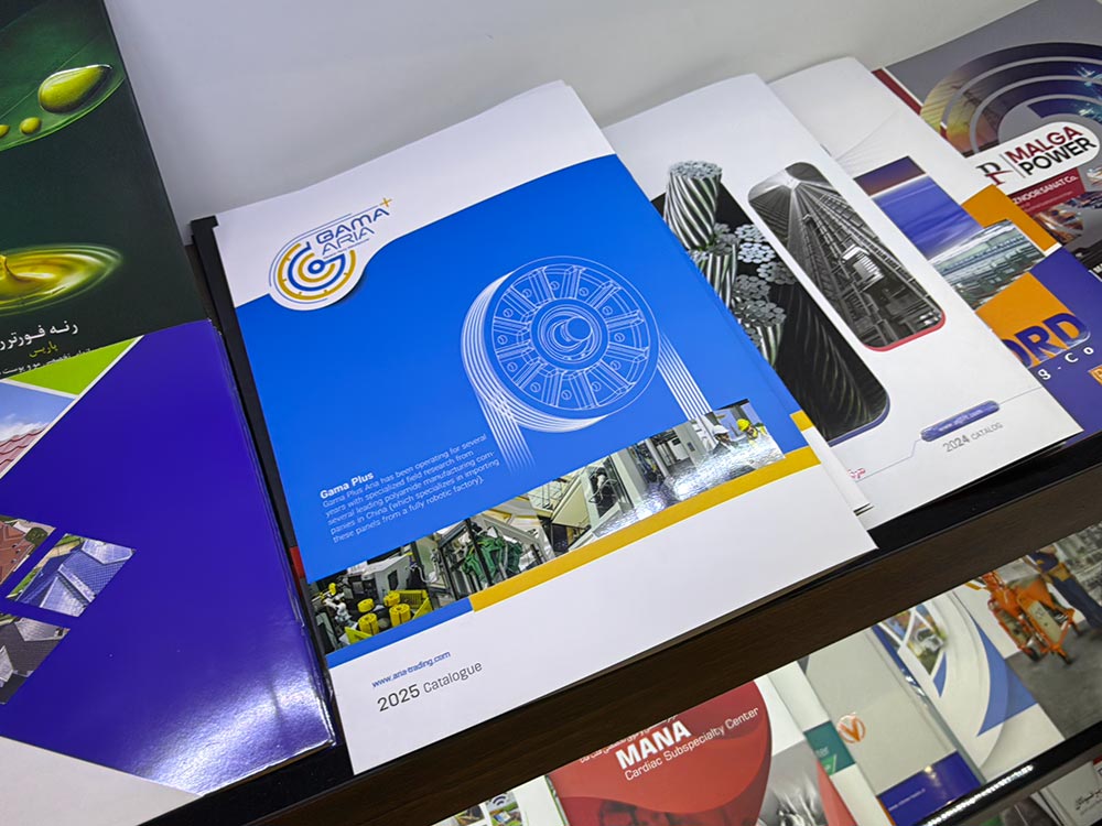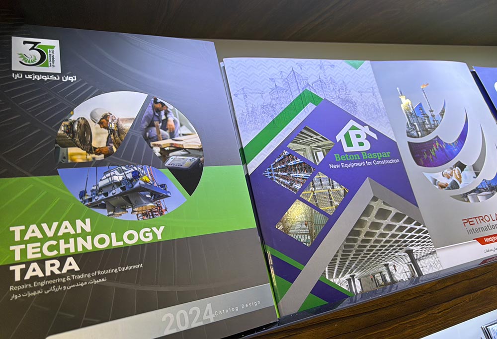 | کاتالوگ نمایشگاهی | مناسب ارائه در غرفهها و رویدادها | چاپ لوکس با روکش UV، طلاکوب یا لمینت براق |