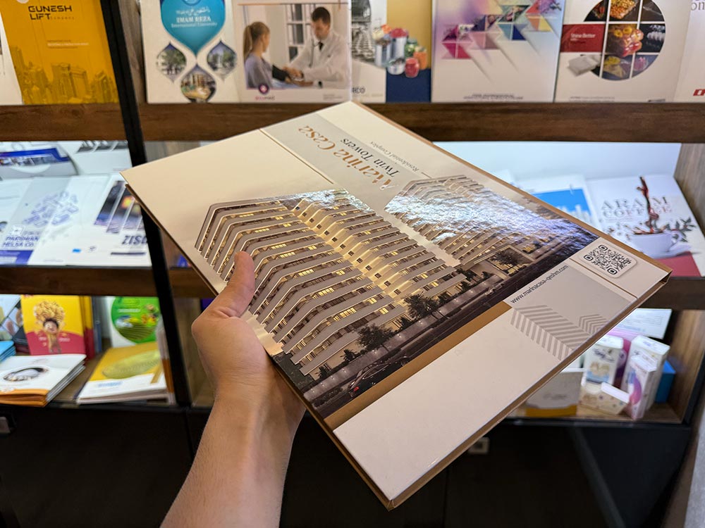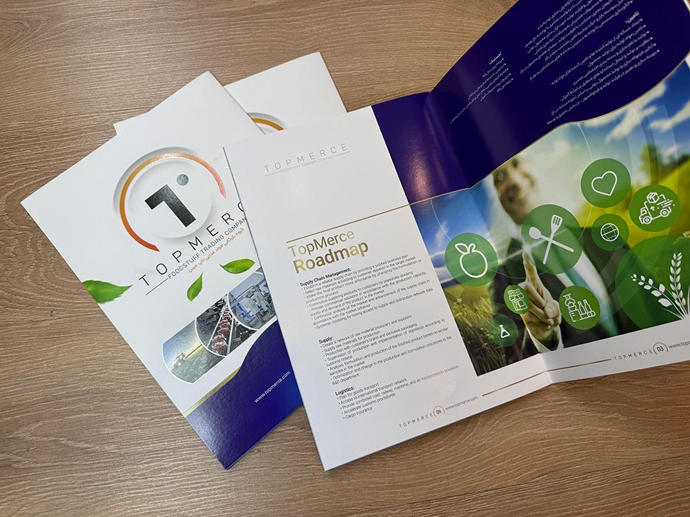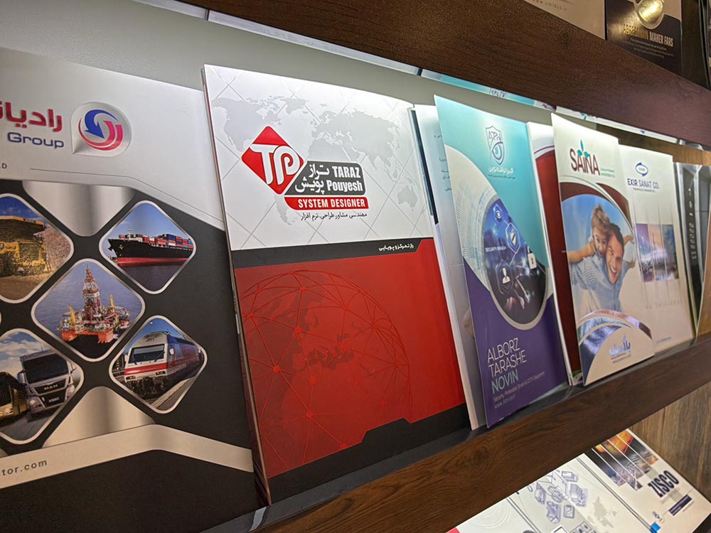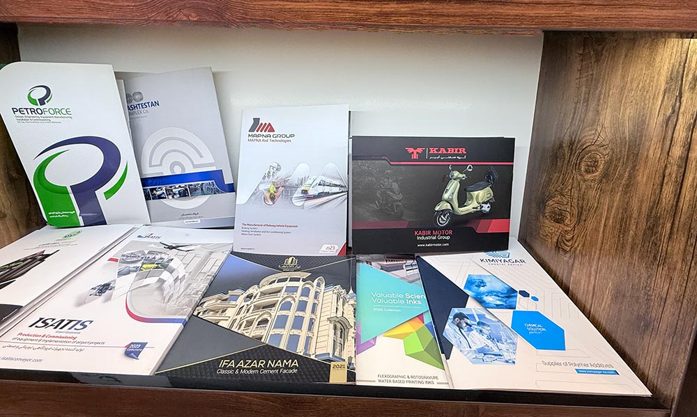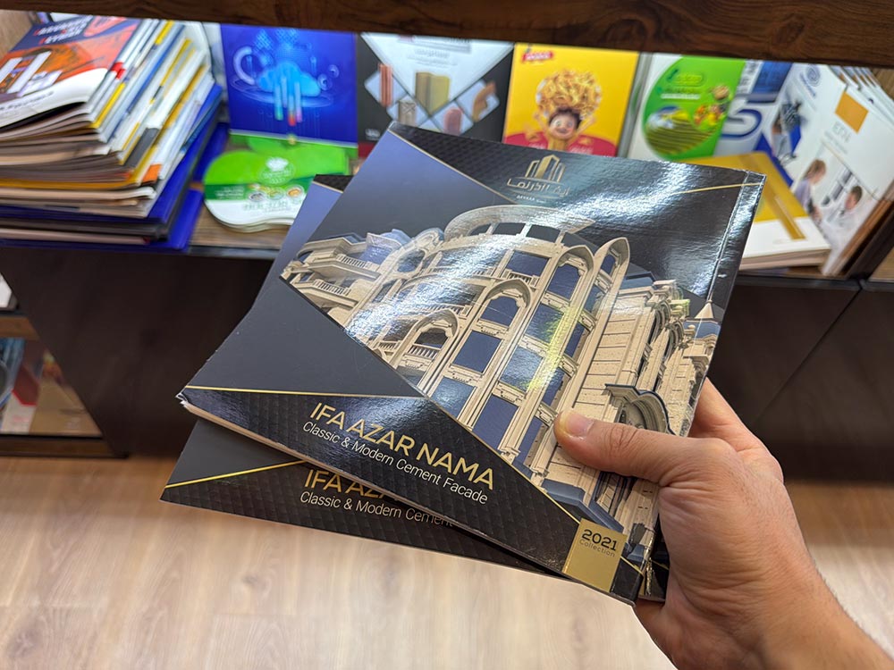 | کاتالوگ نمایشگاهی | مناسب ارائه در غرفهها و رویدادها | چاپ لوکس با روکش UV، طلاکوب یا لمینت براق |
